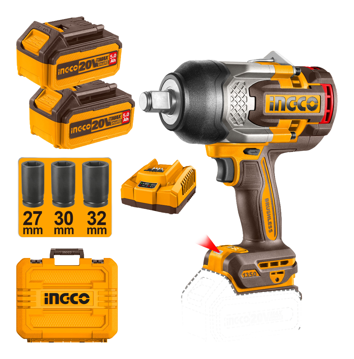 LLAVE DE IMPACTO A BATERÍA 20V P20S 3/4″ 1350NM C/2BATERÍAS, CARGADOR, VALIJA + 3DADOS 27, 30, 32MM