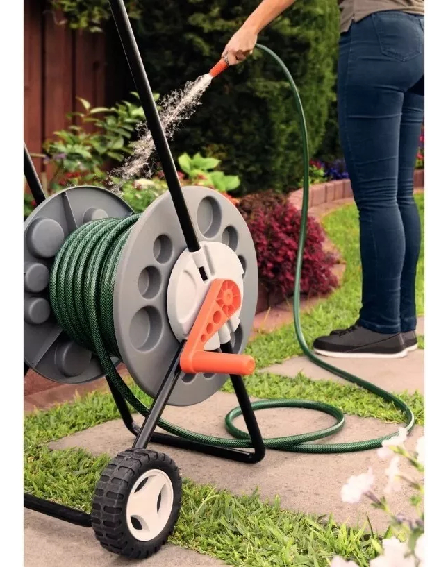 Para evitar que tu manguera quede con nudos y obstruya la salida del agua, precisas un producto que sea práctico para mantenerla organizada. El enrollador de manguera Tramontina con ruedas es perfecto para esa funcionalidad. Además, el accesorio se fabrica en polipropileno de alta resistencia, proporcionando más durabilidad. El producto se puede transportar con facilidad a cualquier lugar de tu patio.