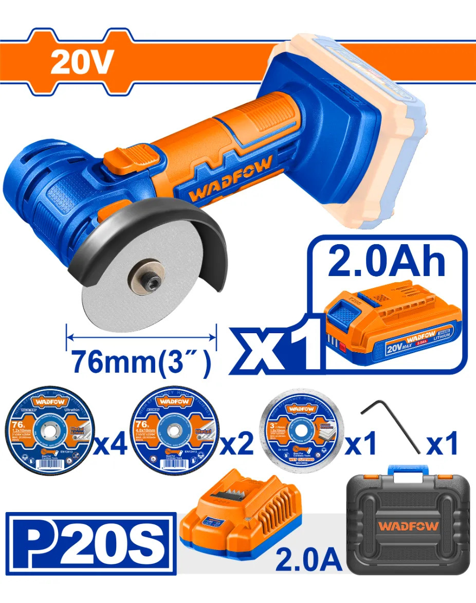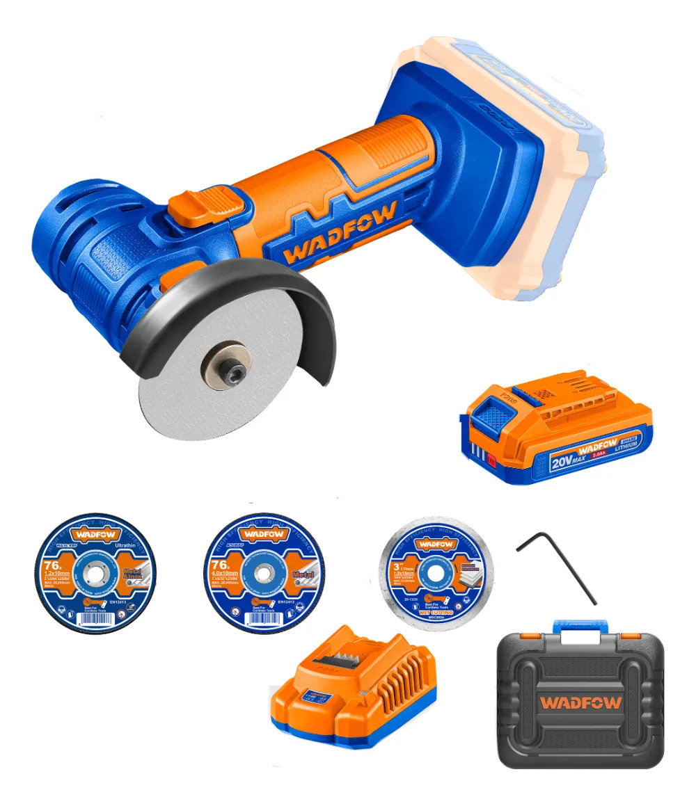 MINI AMOLADORA A BATERIA 3″ 20V + BAT + CARGADOR + ACCESORIOS + VALIJA