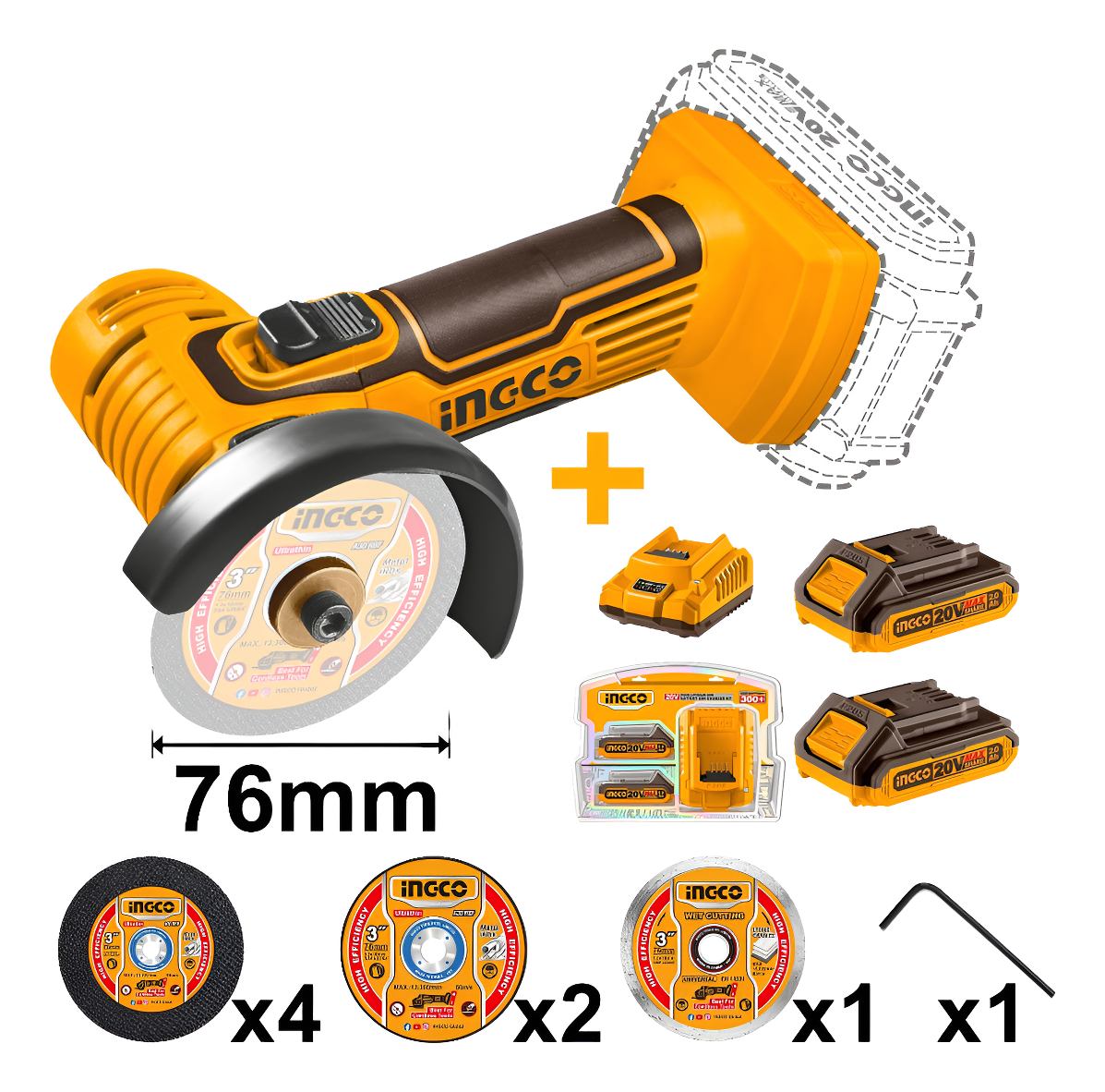 Mini Amoladora 3 20v +discos Con Bat/carg Ingco Cagli7601