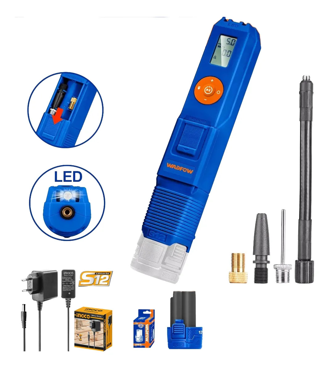 MINI COMPRESOR INFLADOR DE AIRE 12V S12 C ACCESORIOS