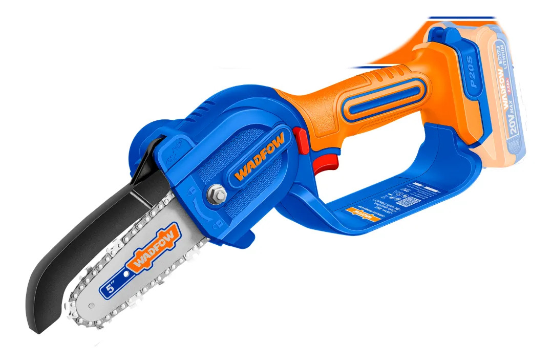 MINI MOTOSIERRA 5″ A BATERIA 20V C/CADENA + VAINA + LLAVE INGLESA + BOTELLA P/ACEITE + BAT 2.0AH + CARGADOR WADFOW WCLP556
