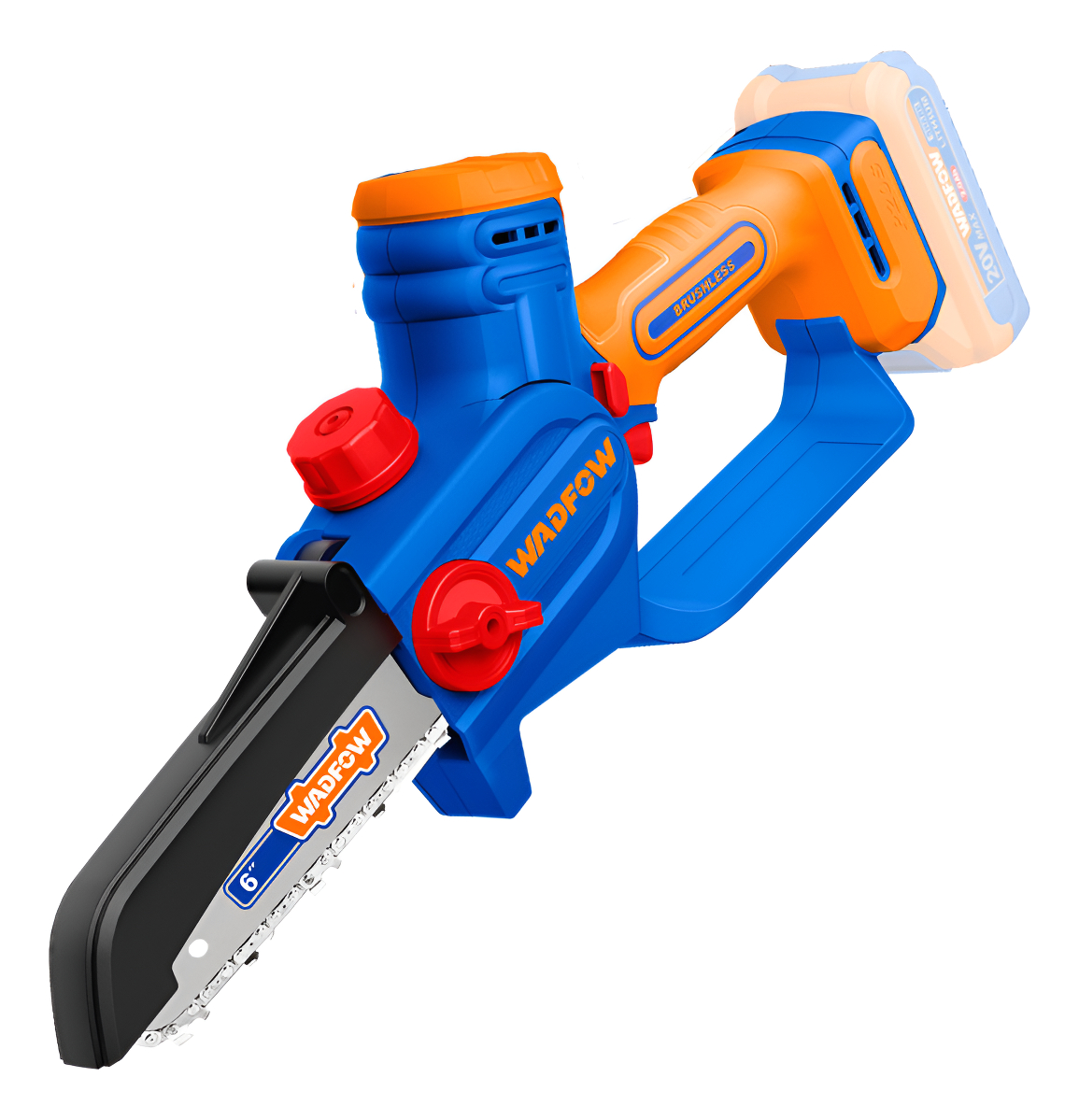 MINI MOTOSIERRA 6″» A BATERIA P20S 20V BRUSHLESS C/CADENA + VAINA + LLAVE INGLESA SIN BAT SIN CARGADOR