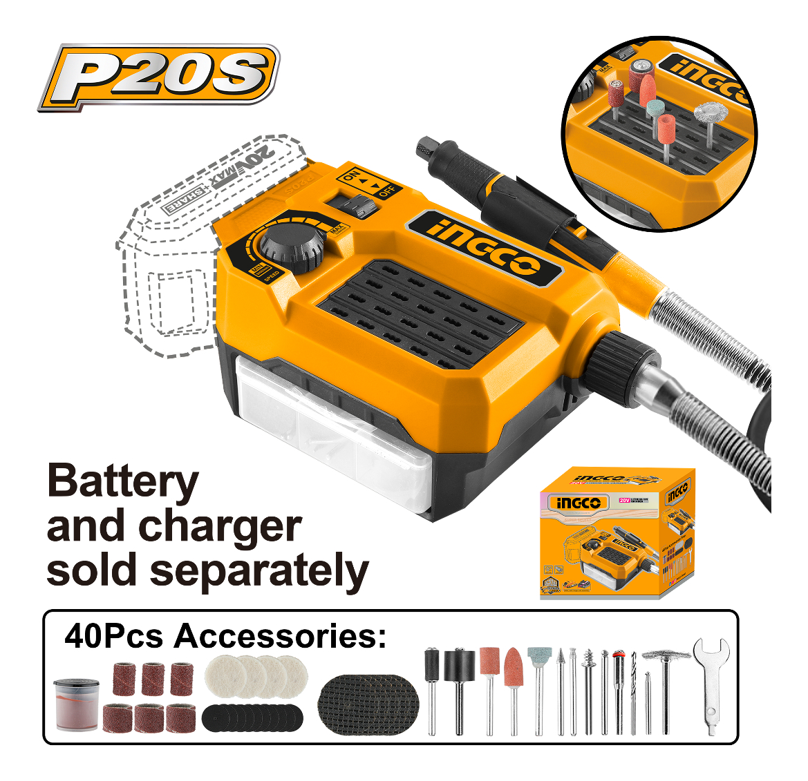 MINI TORNO A BATERIA 20V P20S INALAMBRICO C ACCESORIOS SIN BAT SIN CARG