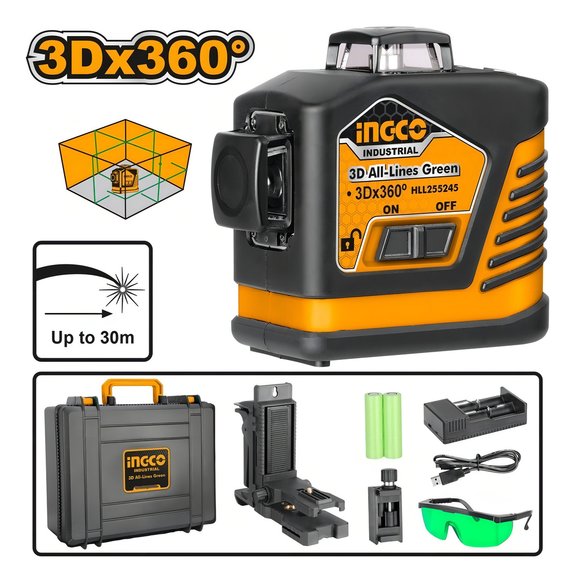 NIVEL LASER AUTONIVELANTE 3D VERDE INGCO HLL255245