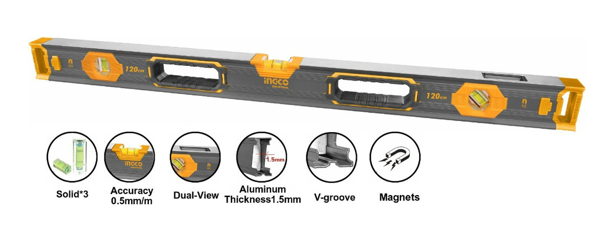 Nivel Magnético 120cm Gris Ingco Hsl68120 – Lnf
