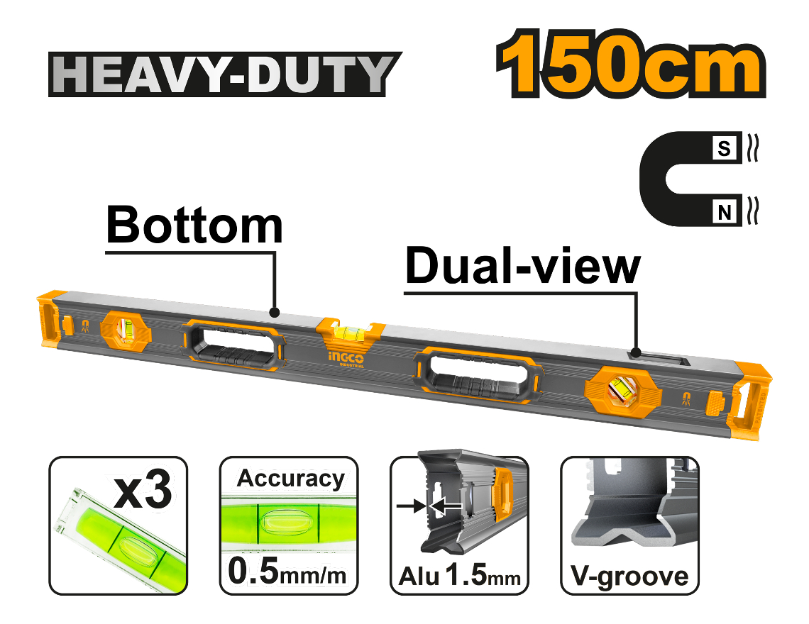 Nivel Magnetico 150cm Gris Ingco Hsl68150