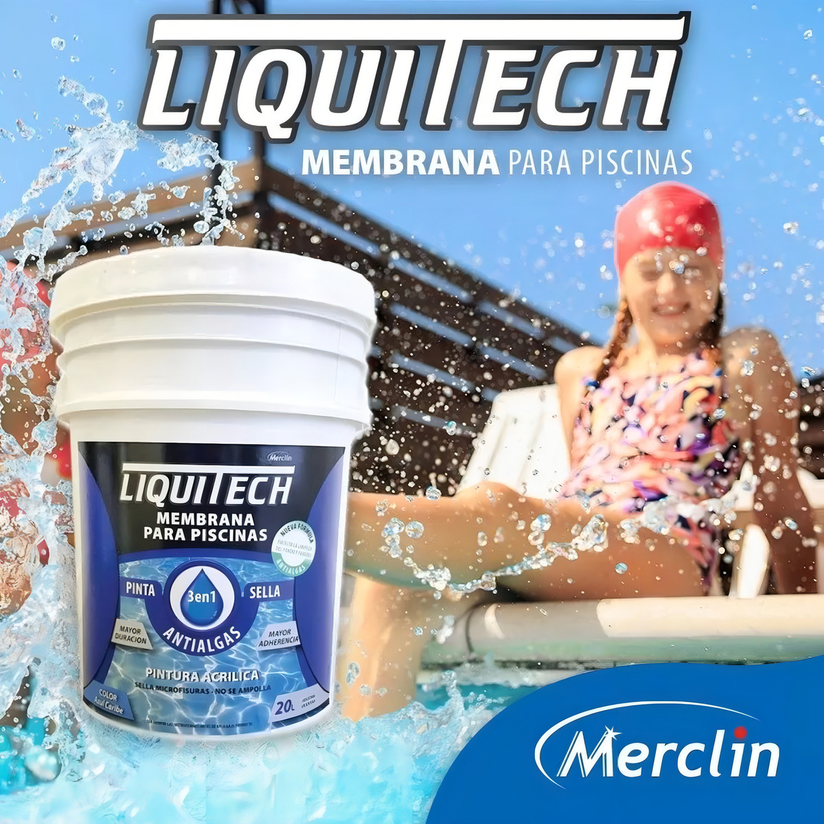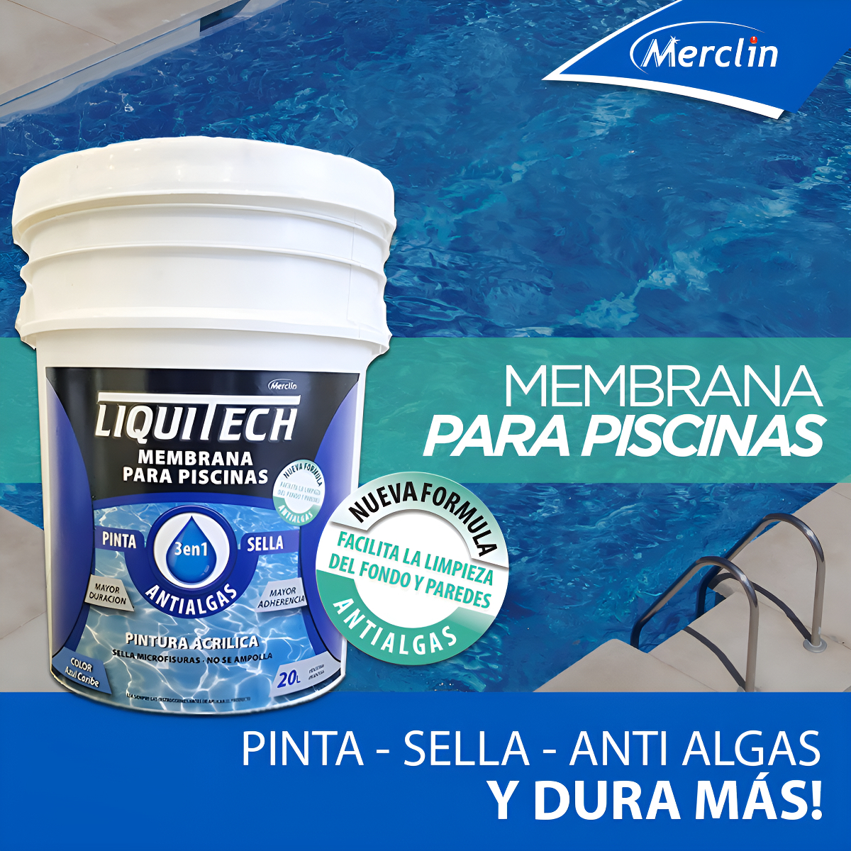 LIQUITECH MEMBRANA PARA PISCINAS forma una Membrana Elastomérica Hidrorepelente de alta resistencia. Proporciona un recubrimiento impermeable, flexible, de muy buenas propiedades para proteger piscinas de revoque, mampostería, hormigón, etc. Resistencia superior al ampollado respetando los tiempos de secado recomendados antes del llenado de la pileta. Película lisa, mejora imperfecciones al tacto.
