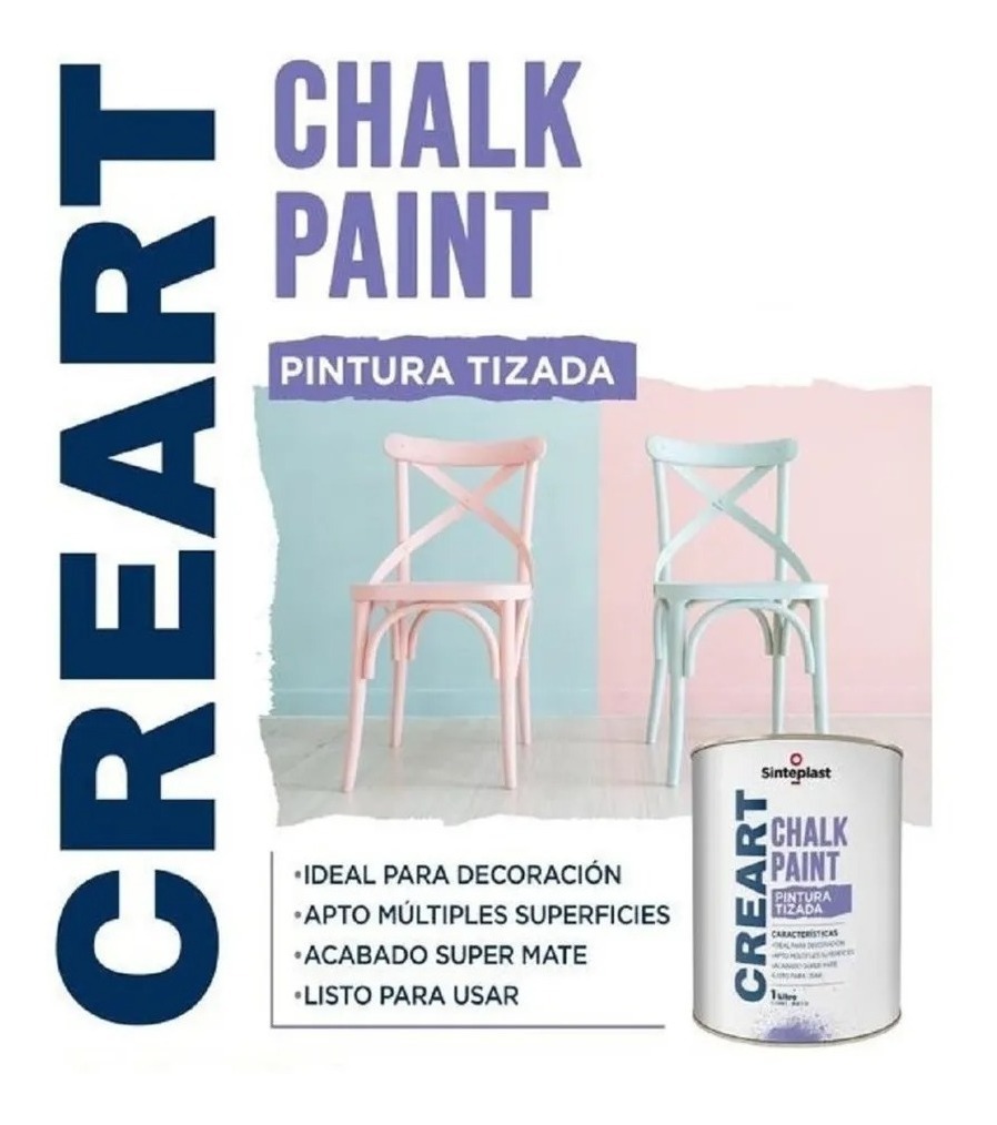 Es una pintura al agua de terminación mate para interiores. Ideal para restaurar y rejuvenecer muebles y objetos de decoración, de acabado homogéneo, fácil de aplicar y rápido secado. Excelente adherencia y resistencia al roce. Producto apropiado para aplicar sobre superficies de madera, melanina, vidrio, chapa, aluminio y galvanizado.