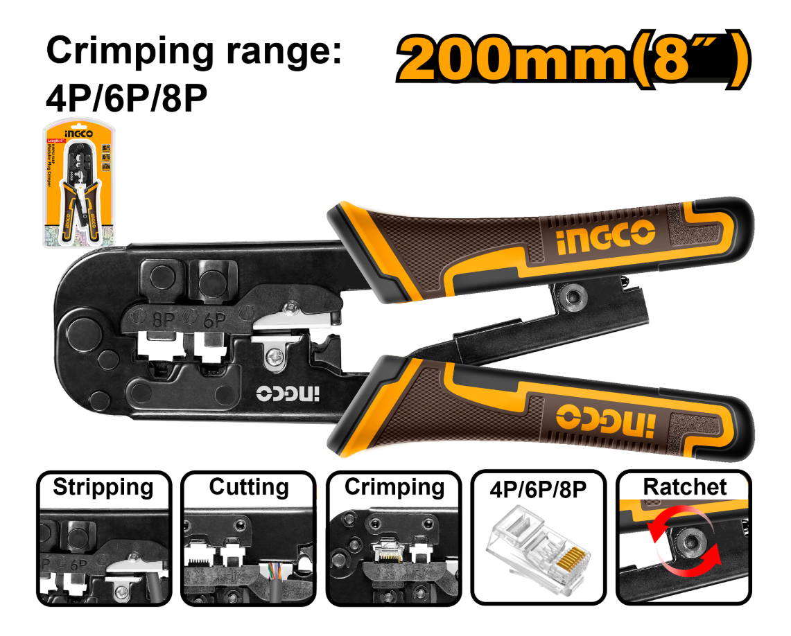 -Rango de crimpado: 4P, 6P, 8P.