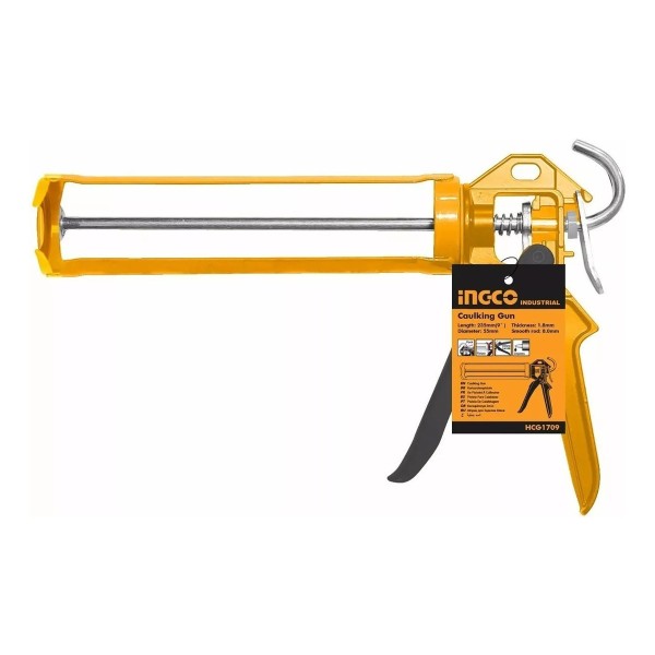 Pistola de calafateo 9 » Mango de aluminio fuerte Longitud: 235mm Con función rotativa Espesor: 1.8 mm Diámetro: 55 mm Varilla lisa: 8.0 mm Embalado con tarjeta de papel