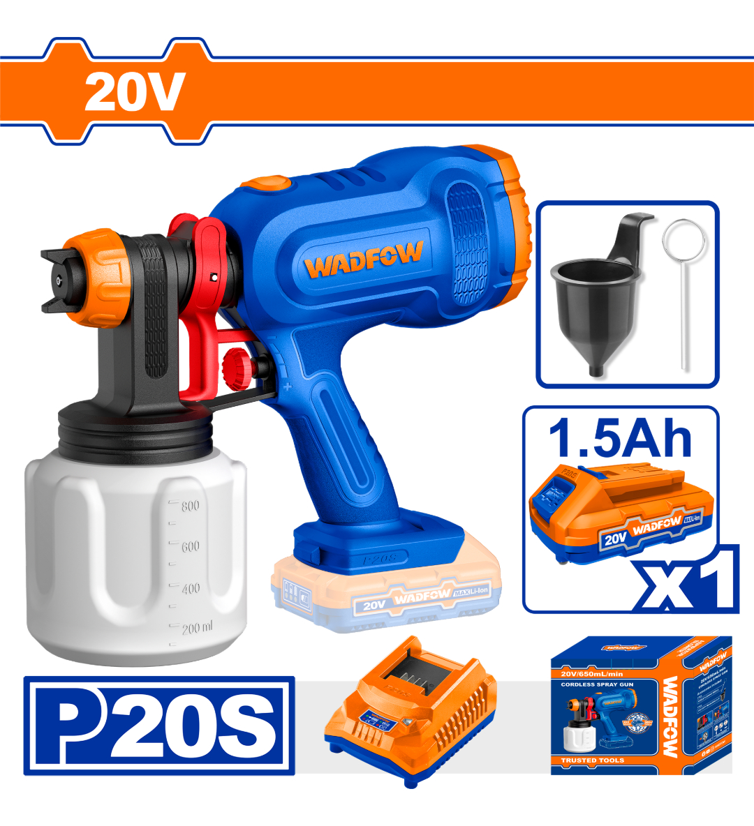 Pistola Pintar 20v 650ml/min Con Bat/carg Wadfow Wsu30662