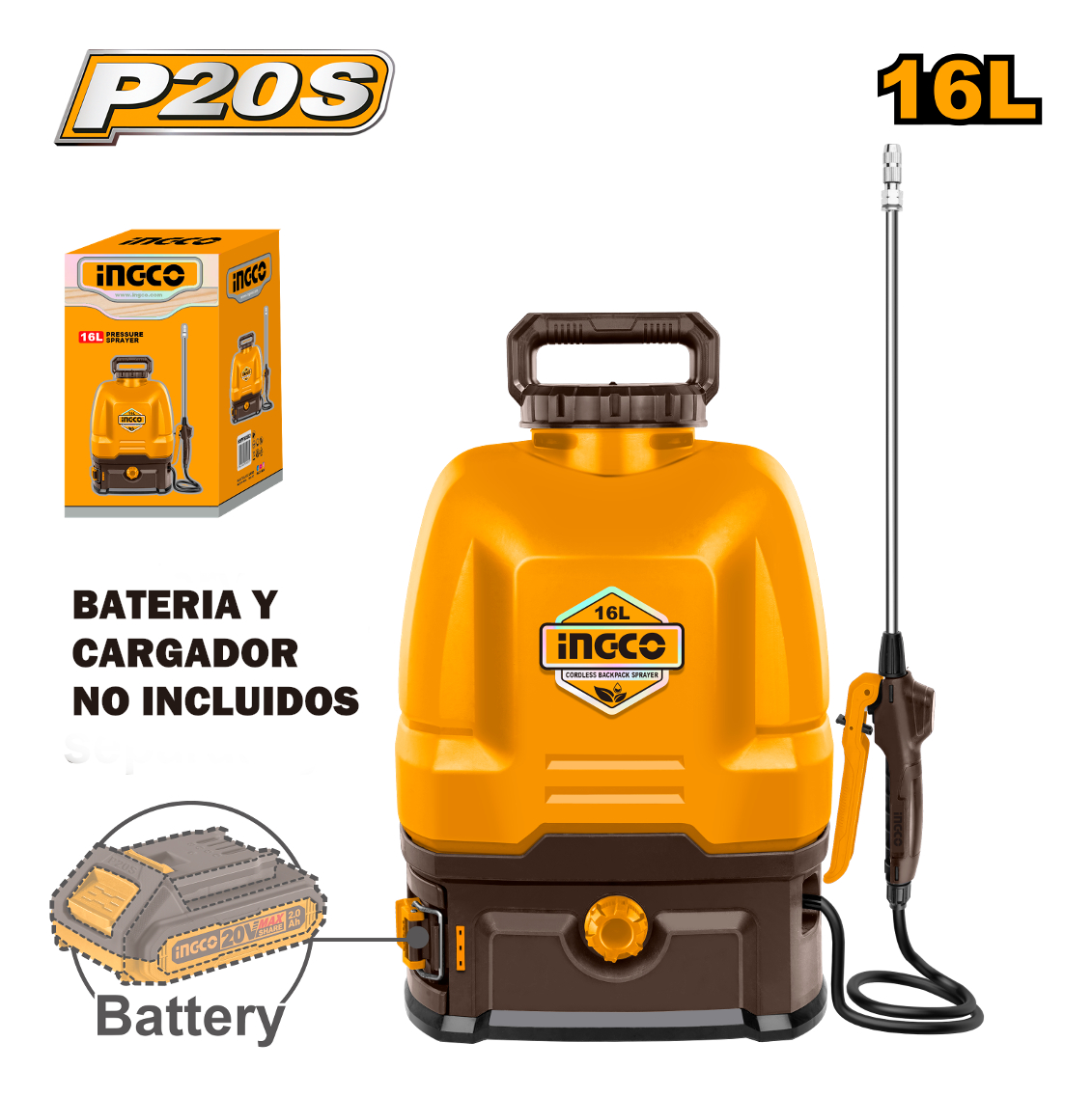 PULVERIZADOR FUMIGADOR DE MOCHILA 16LTS A BATERIA 20V P20S S/BAT