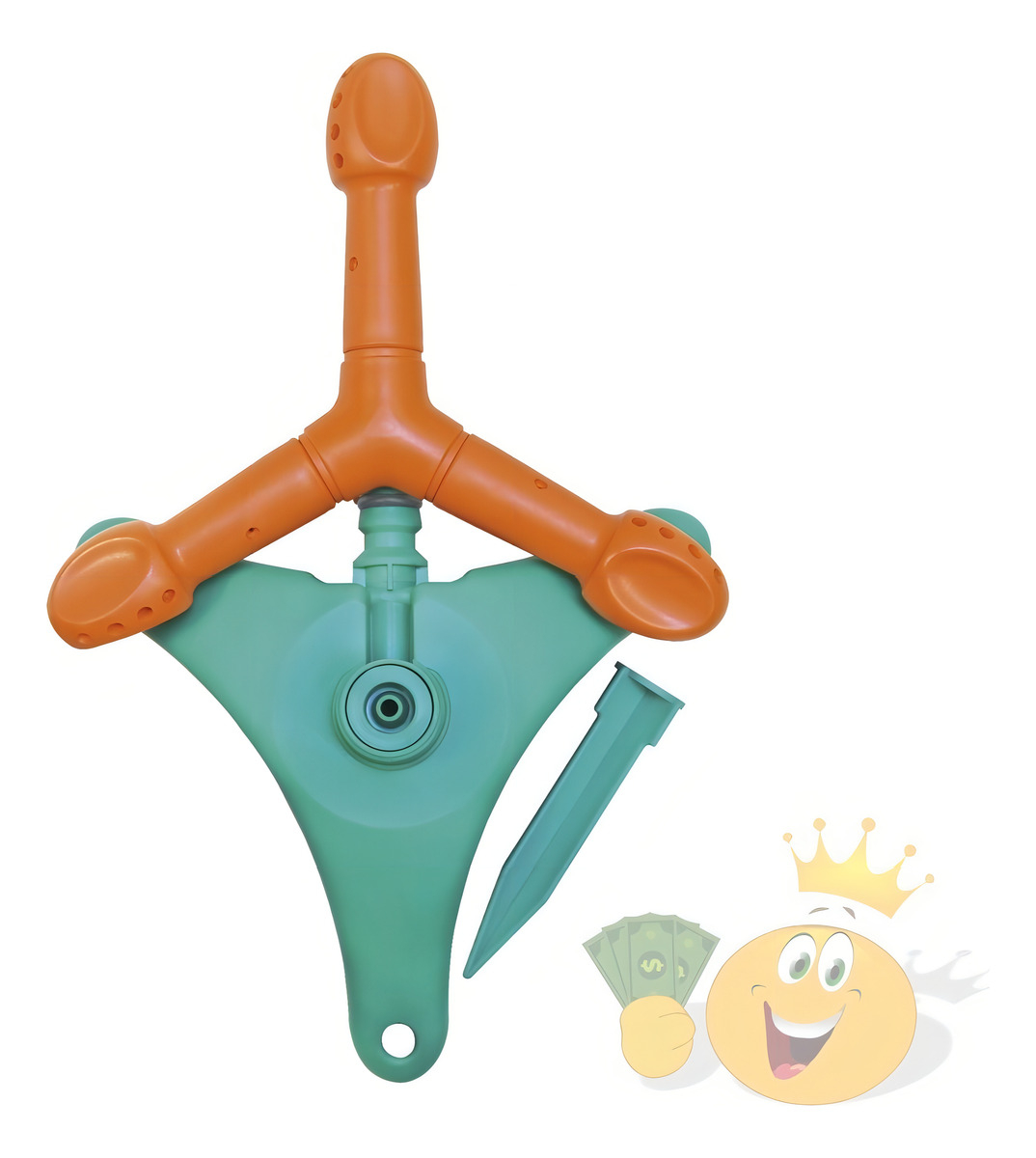 Este aspersor es perfecto para regar tu jardín, césped, huertas domésticas y más. Cuenta con 3 brazos rotativos de plástico equipados con boquillas ajustables en 3 posiciones, permitiéndote dirigir el chorro de agua de acuerdo a tus necesidades.