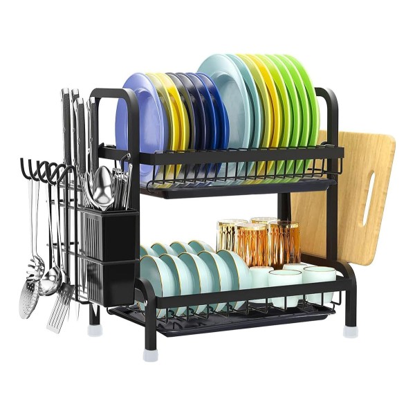 ESCURRIDOR DE VAJILLA DOBLE PISO NEGRO MATE