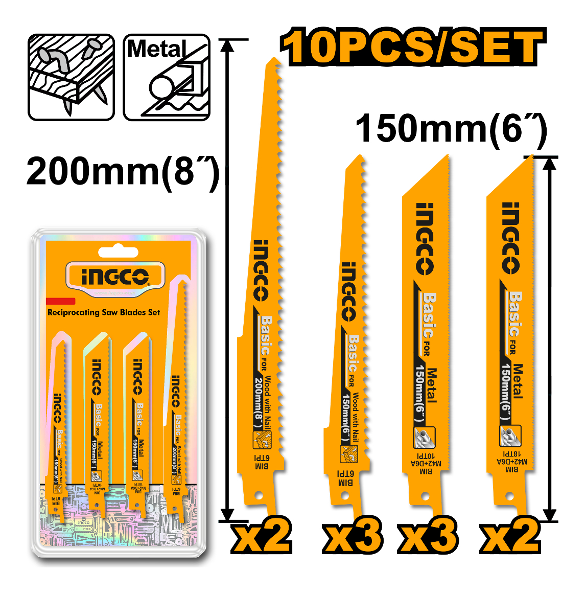 Set 10 Hojas Para Sierra Sable Metal Madera Ingco Rsb1001