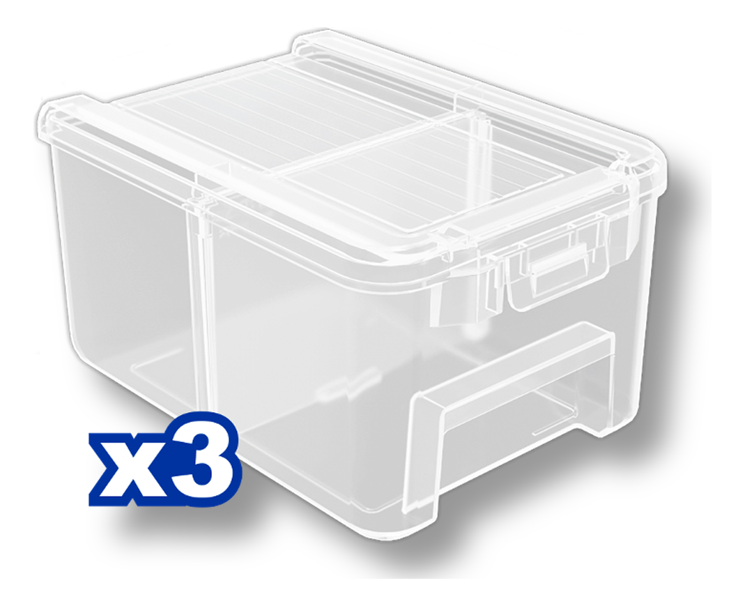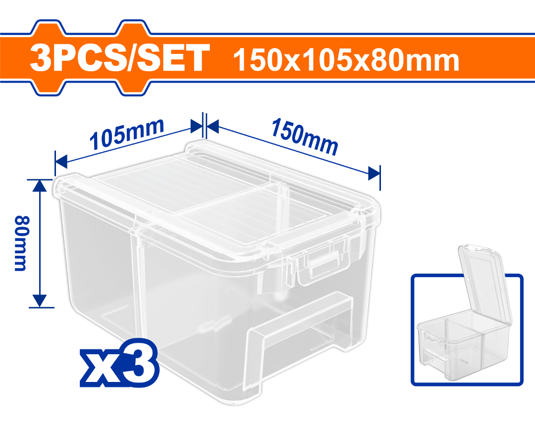 SET DE 3PCS CONTENEDOR PLASTICO TRANSPARENTE APILABLE 150X105X80MM