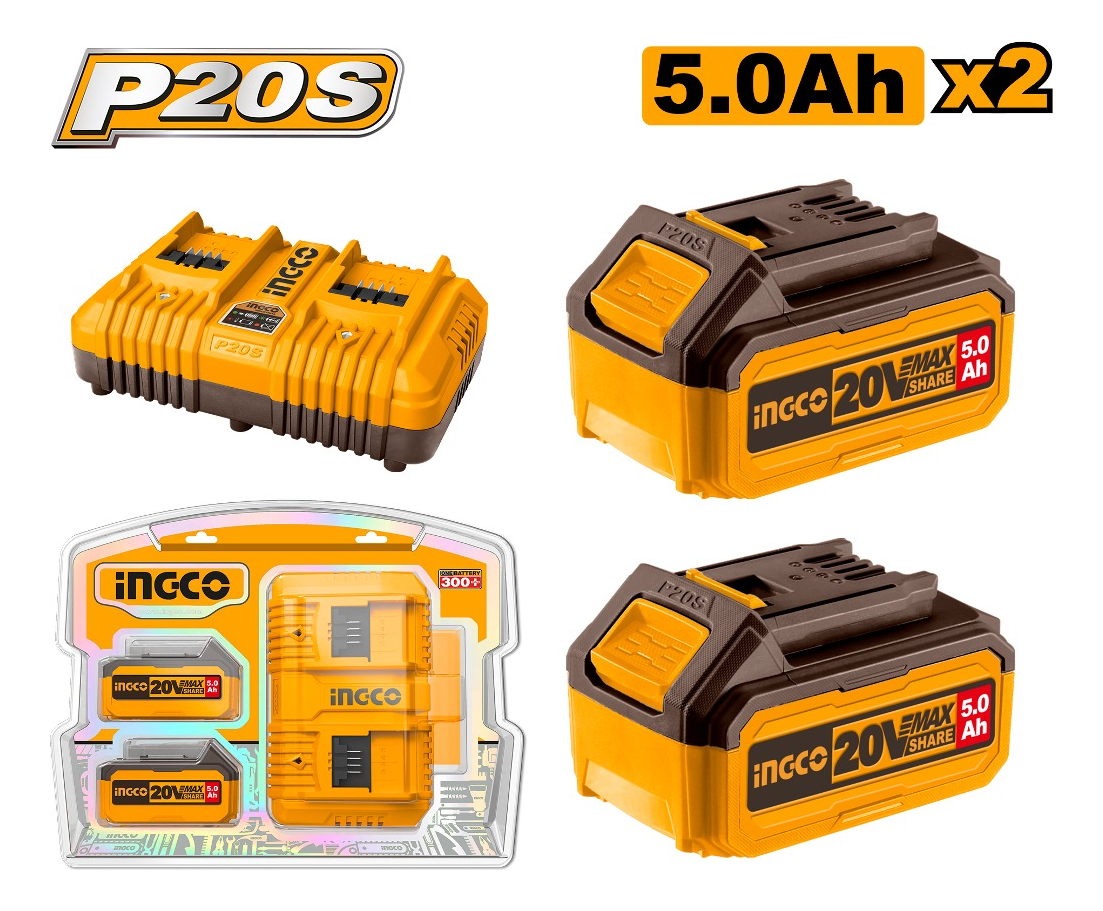 Set De 2 Baterias 20v 5.0 Amp + 1 Carg Doble Ingco Fbcpk2425
