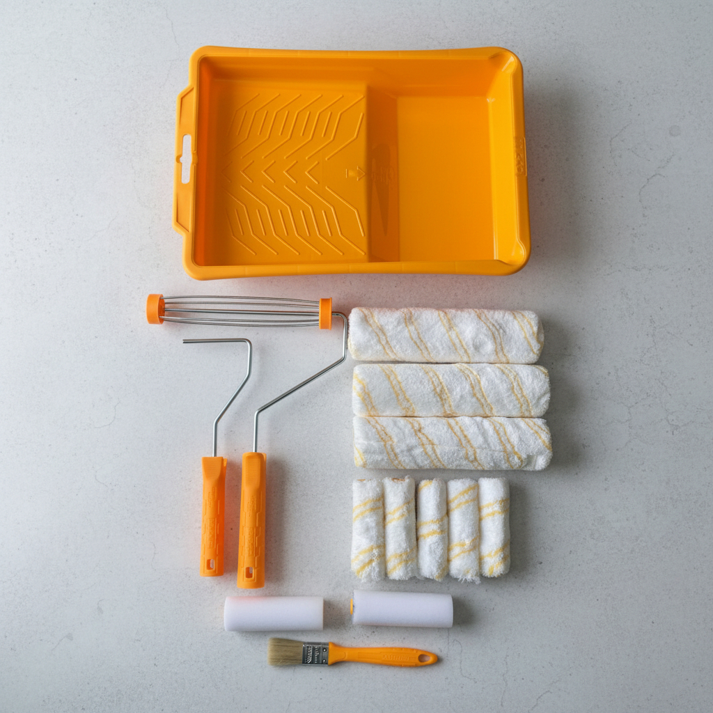 Contiene mini rodillos y mini brocha para finas terminaciones.