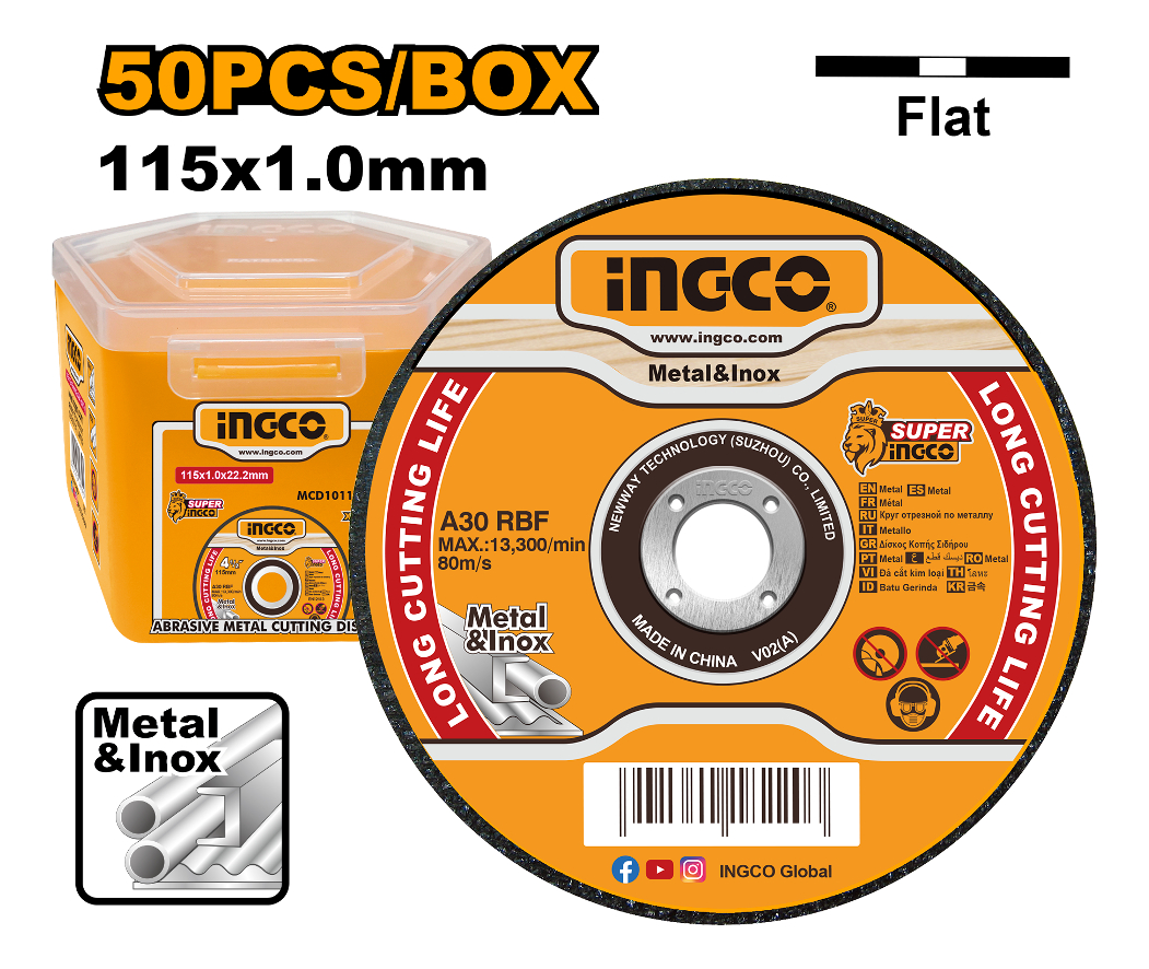 Set Lata X 50 Discos Corte Metal 115mm Ingco Mcd1011550