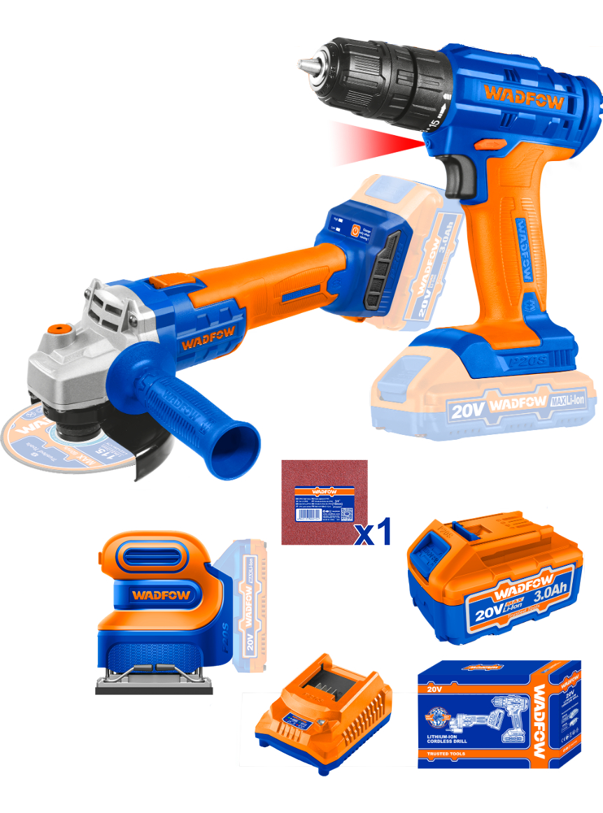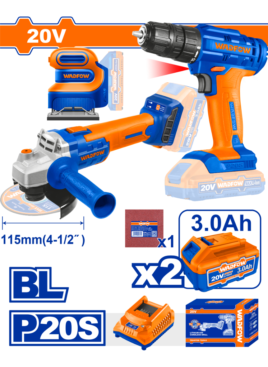 SET AMOLADORA BRUSHLESS + ATORNILLADOR A BATERIA 20V C/ 2 BAT 3.0 AMP + CARGADOR