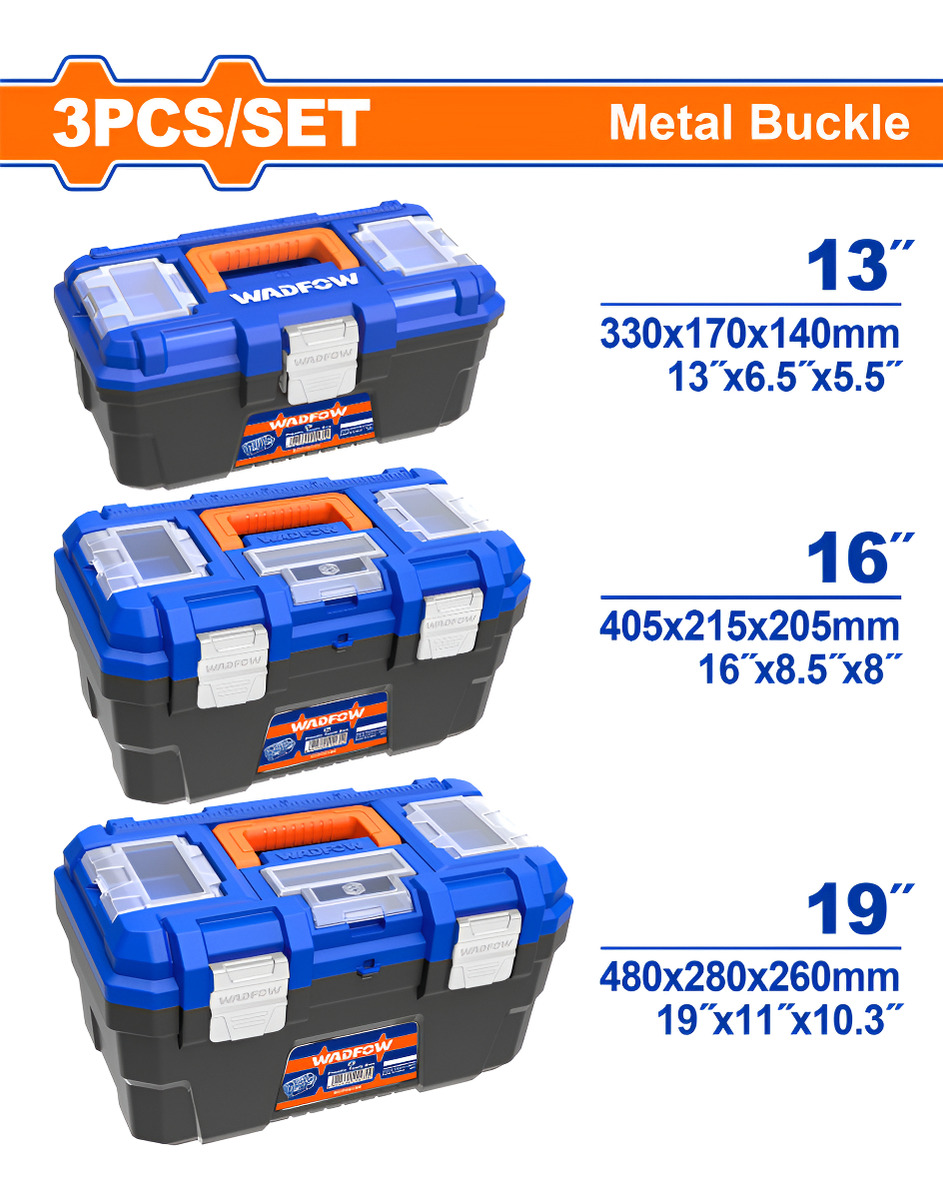 SET X 3 CAJAS DE HERRAMIENTA 13″ 16″ 19″ BROCHE METALICO