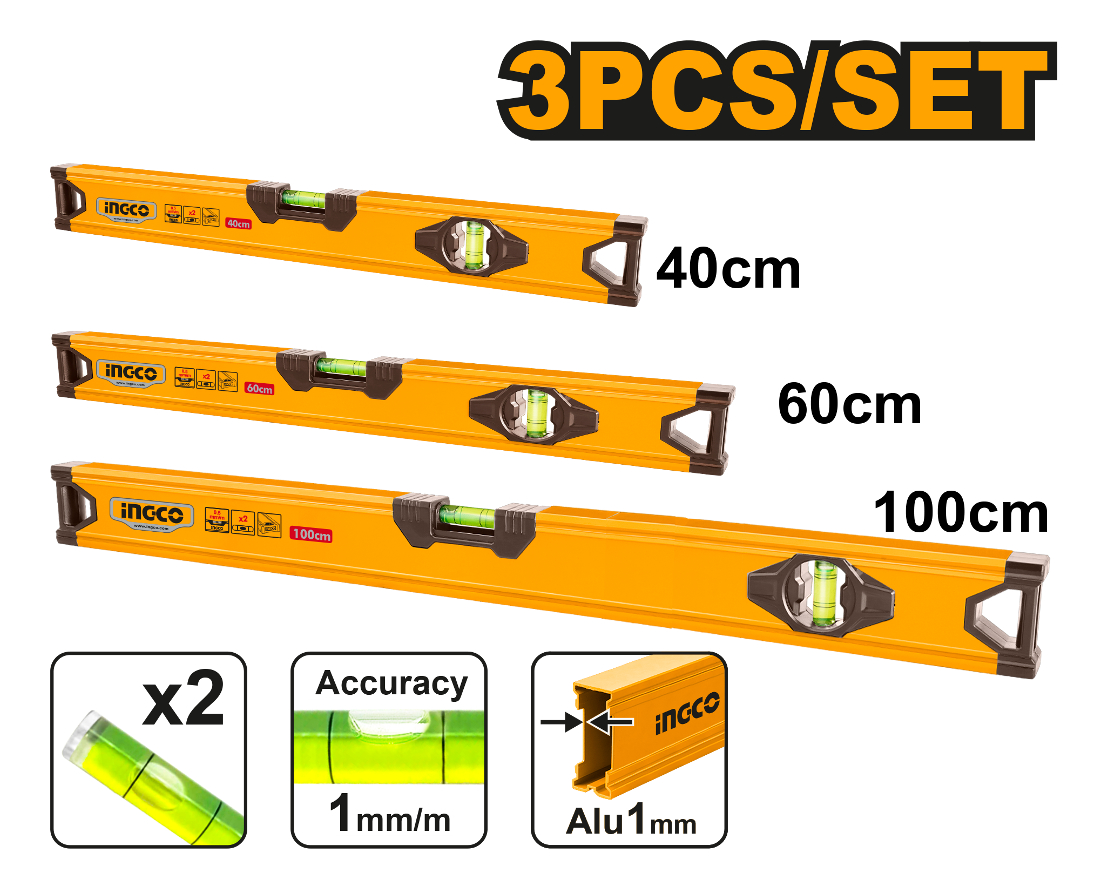 SET X 3 NIVEL BURBUJA 40CM 60CM 100CM