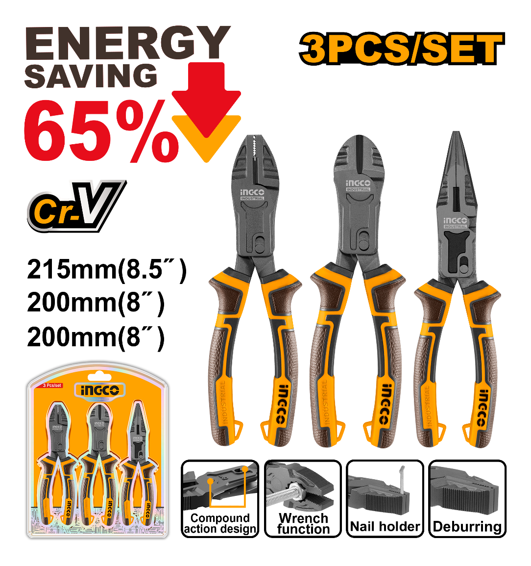SET X 3 PINZAS CR-V MULTIUSO CORTA FACIL