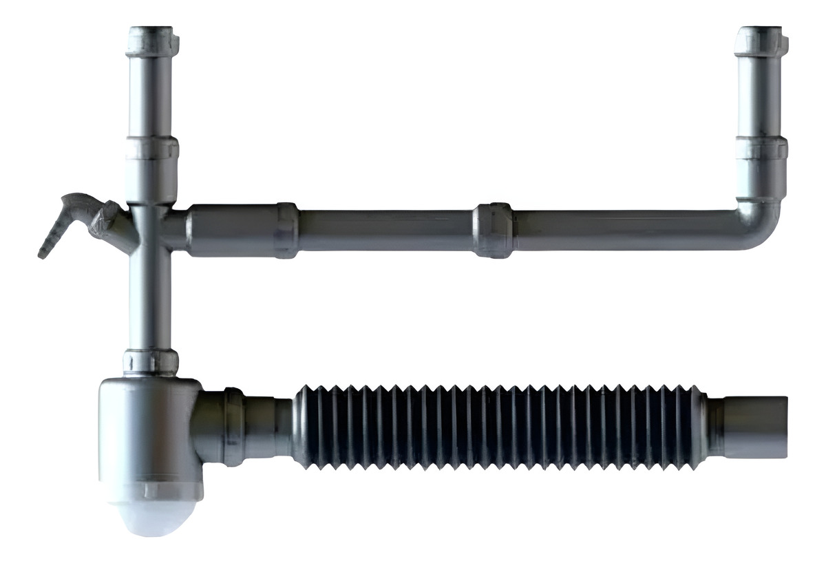 Ajuste de conexión a la válvula regulable en altura, con caño tipo fuelle para facilitar la inserción al desagüe de salida