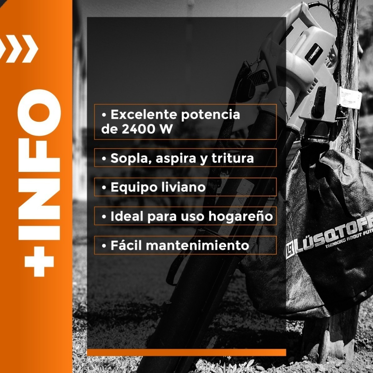 Con tu sopladora Lüsqtoff SPL2400-8 podés eliminar la suciedad y mantener despejadas las áreas verdes, abiertas y otras zonas. Gracias a su calidad, limpia de manera práctica, efectiva y rápida una gran variedad de superficies.