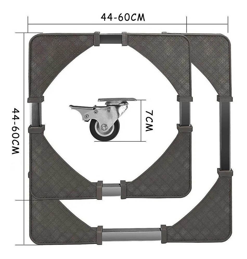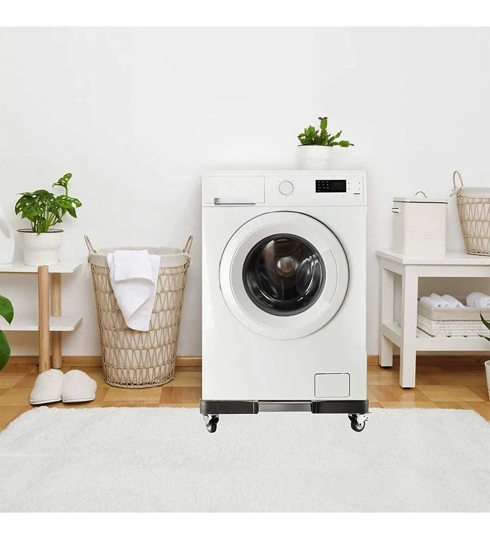 Cómodo y resistente soporte para lavarropa, heladera, freezer y más, sus ruedas dan facilidad al transportar tus electrodomésticos, y dos de ellas tienen freno para más seguridad. Es regulable, se adapta al tamaño de tu artefacto.