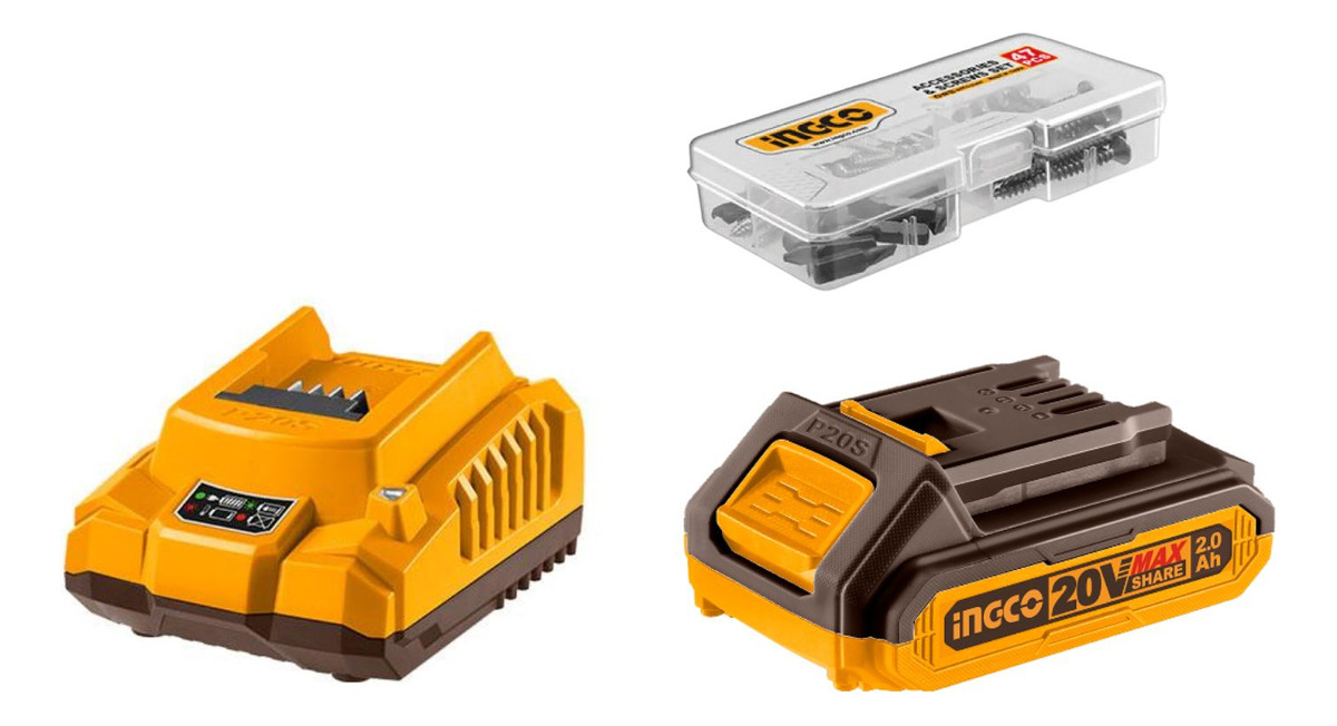 Taladro Atornillador 55nm Incluye Bateria Y Cargador Ingco Color Amarillo