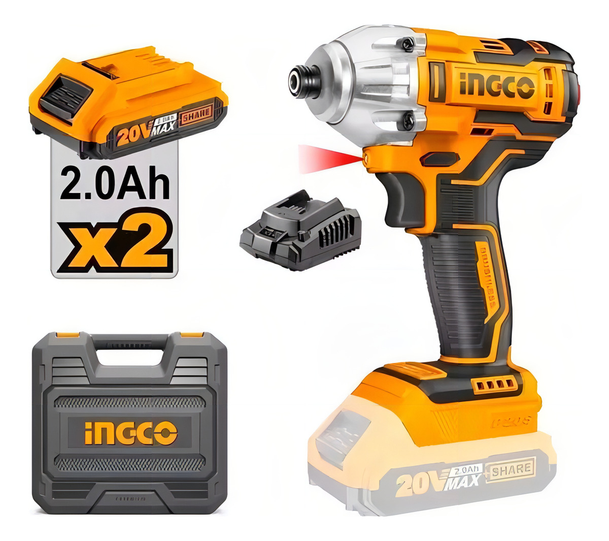 Taladro Atornillador Inalambrico Ion De Litio Ingco 20v P20s Color Amarillo