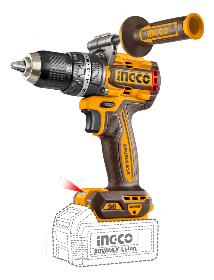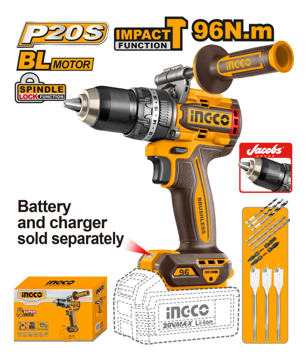 TALADRO ATORNILLADOR C/PERCUTOR A BATERIA BRUSHLESS 20V 96NM + ACCESORIOS, S/CARG S/BAT