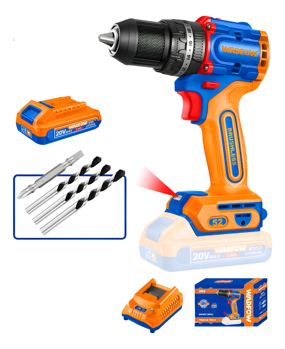 TALADRO ATORNILLADOR C/PERCUTOR A BATERIA P20S 20V BRUSHLESS 52NM C/BAT Y CARGADOR