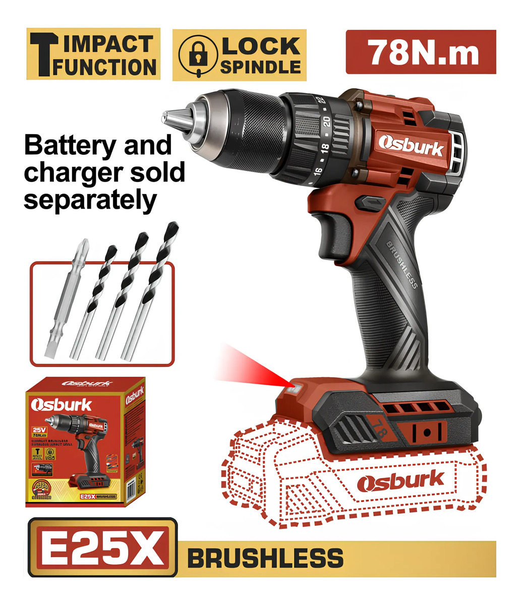 Taladro Inalámbrico ½” 25V Función de Impacto.