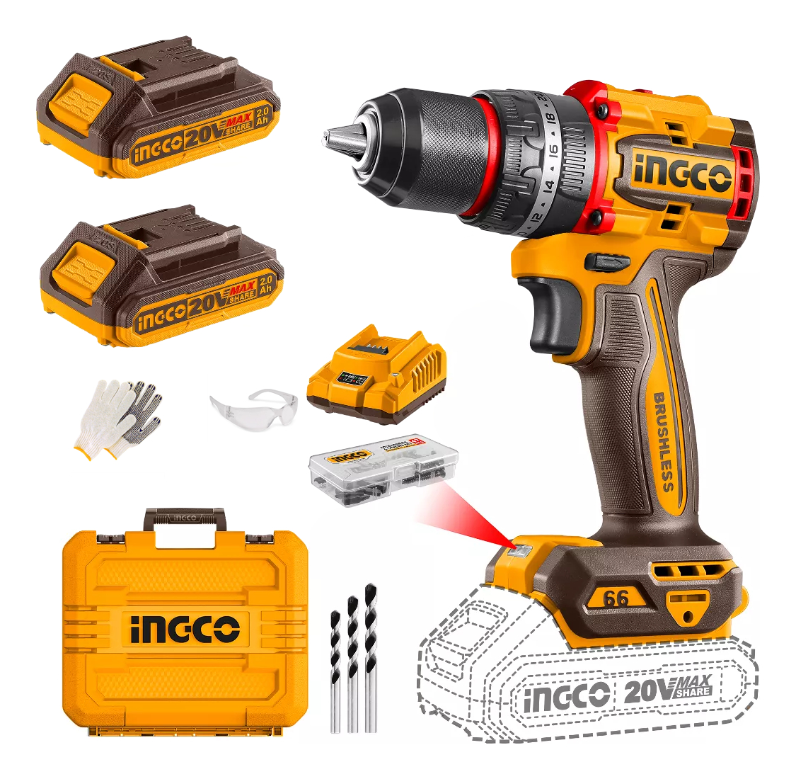 TALADRO ATORNILLADOR C/PERCUTOR A BATERIA 13MM COMPACT BRUSHLESS 20V P20S EN VALIJA C/2 BAT + 47 ACCESORIOS