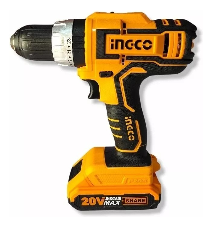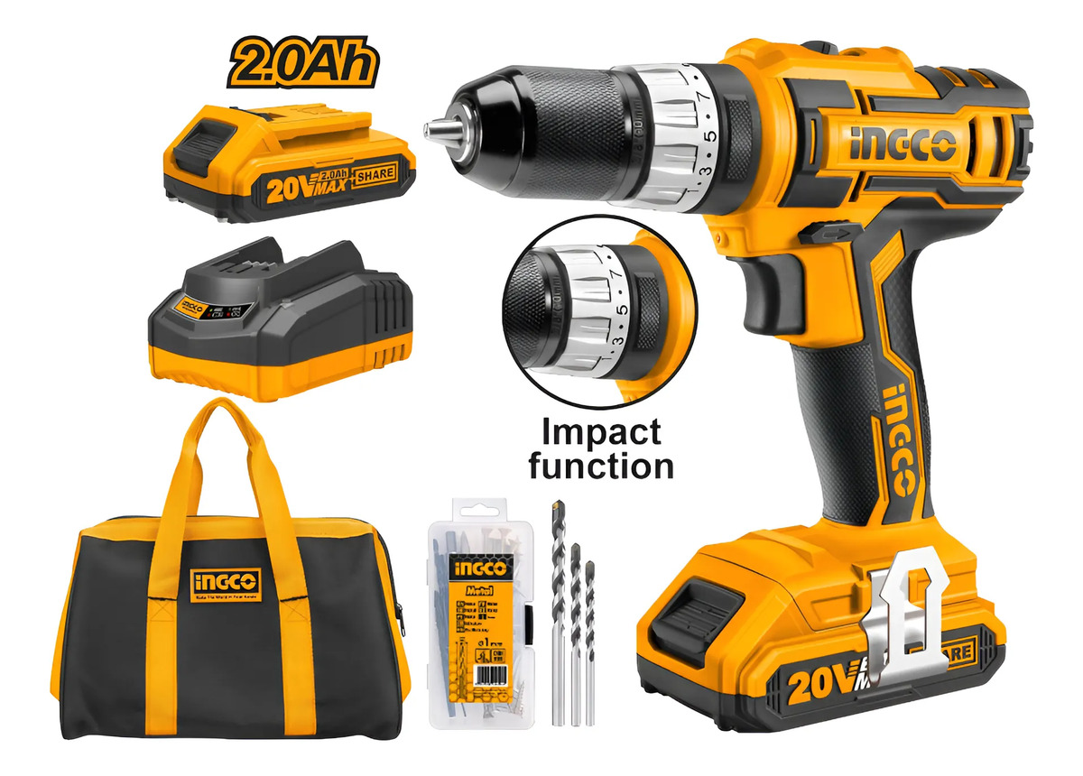 TALADRO ATORNILLADOR 20VOLT C PERCUTOR BOLSO 2 BAT LITIO INGCO + regalos