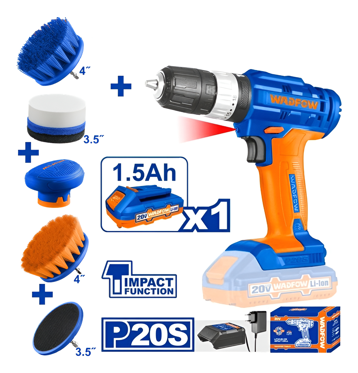 Taladro Atornillador Percutor Wadfow Wcdp521 + Set Cepillos