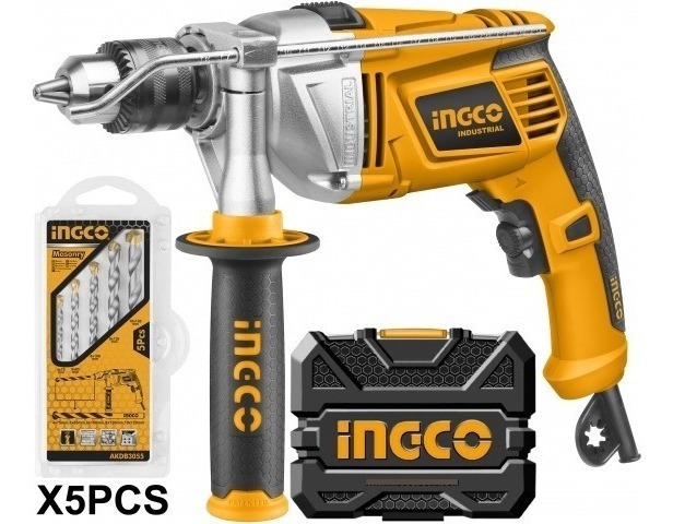 TALADRO 13MM INGCO C VALIJA + 5 MECHAS PERCUTOR INDUSTRIAL 1100W