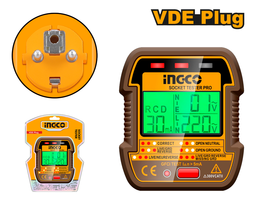 TESTER DE ENCHUFE TOMA CORRIENTE VDE PLUG LCD DISPLAY