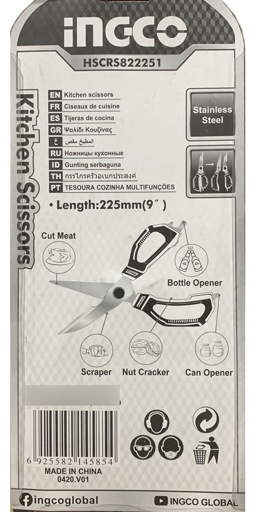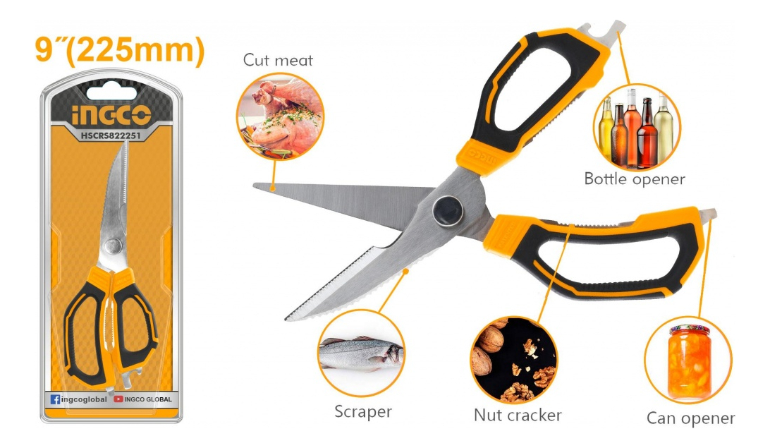 TIJERA DE COCINA CAMPING MULTIUSO 225MM INGCO HSCRS822251