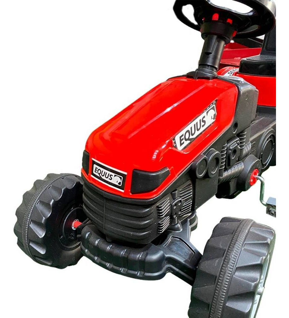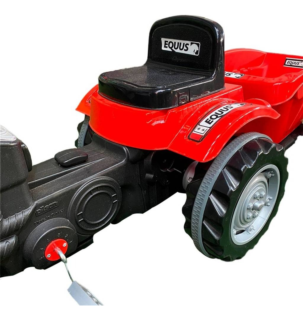 Se trata de un tractor equipado con pedales y asiento ajustable.