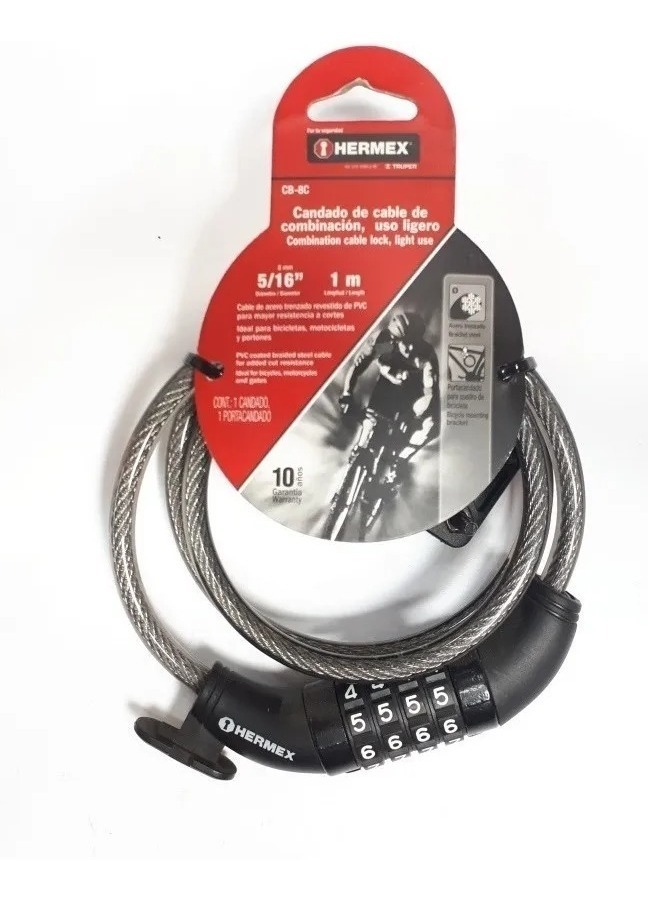 Tranca Bici Combinación Linga Acero 100cm Hermex Excelente!