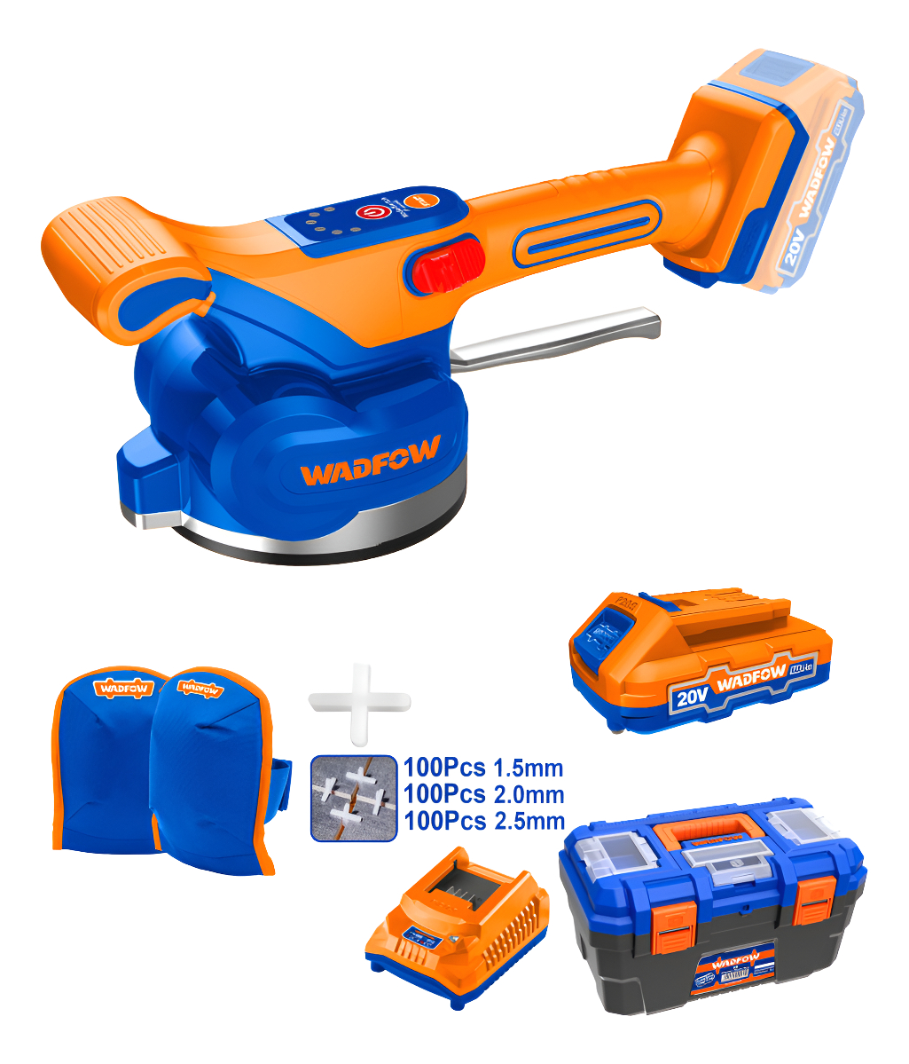 VENTOSA VIBRADORA A BATERIA 20V P20S P/COLOCAR CERAMICA C/BATERÍA 2.0AH + CARGADOR + RODILLERAS + VALIJA